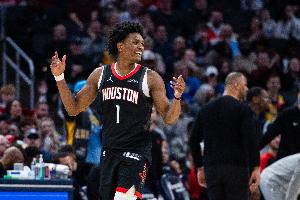 上半场,火箭球员阿门表现出色,场上十分积极,进攻高效的同时也很全能,在16分钟的时间里,投篮10中7,三分球1中0,拿到14分7篮板7助攻2抢断的数据,正负值+23。